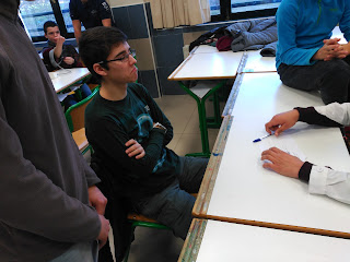 Ya han empezado las pruebas, primero entre la gente de tercero, hasta se vieron batas de Osakidetza. La semana que viene pasarán el resto de niveles, pero de momento lo hicimos dentro del propio grupo para organizar tiempos y movimientos. Creo sinceramente que se lo pasaron bien y pusieron mucho interés, de hecho el segundo grupo pidió a varias profesoras que se sometieran al examen y el disfrute se multiplicó. Por cierto, la gente de 4º se me ha quejado porque el año pasado no se me ocurrió hacer esto, en fin…