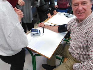 En 3º de ESO tratamos todos los aparatos del cuerpo humano, estudiamos su anatomía, su fisiología y las enfermedades asociadas. En cuanto acabemos con el sistema circulatorio les he propuesto hacer de nuestro centro una especie de consultorio, nos pondremos batas blancas y haremos pasar a todo el alumnado que no sea de tercero por nuestro improvisado ambulatorio. Cada aula tendrá varios equipos de análisis y nuestros «pacientes» pasarán de un equipo al otro, uno medirá peso y altura, otro tensión arterial y pulso, otro exámenes de vista (miopía, hipermetropía, astigmatismo y daltonismo), y para finalizar análisis genético del pedrigrí: enrollamiento de lengua, cruce de manos, brazos y piernas. Ficha de cada persona, datos tabulados, análisis estadístico, medias de cada clase, gráficas, información sobre lo estudiado…, nos va a suponer mucho trabajo a todos y todas, pero no les asusta. Es más, les ilusiona, teníais que haber visto sus caras, sus «esto no se ha hecho nunca aquí», sus «y luego nos analizamos los de tercero también», y el movimiento en clase que se ha traducido en jolgorio. No sé si esto es innovar o hacer algo diferente, pero tengo claro que se va a montar una gorda. Y la pesaremos.